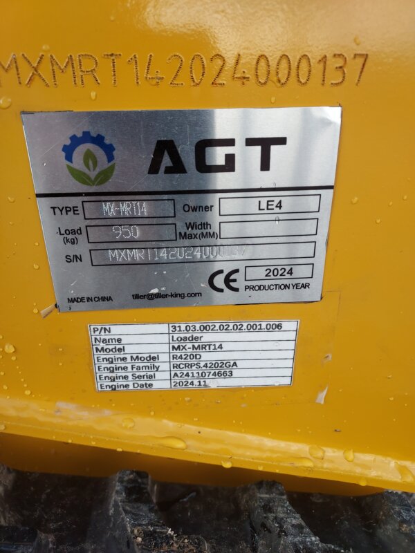 Brand new 2024 AGT MX-MRT14 mini compact track loader – perfect for farms, construction, or landscaping in tight spaces! Powered by a 15hp Rato gas engine, this stand-on machine comes with a 32” quick-attach bucket and auxiliary hydraulics for versatile attachments.